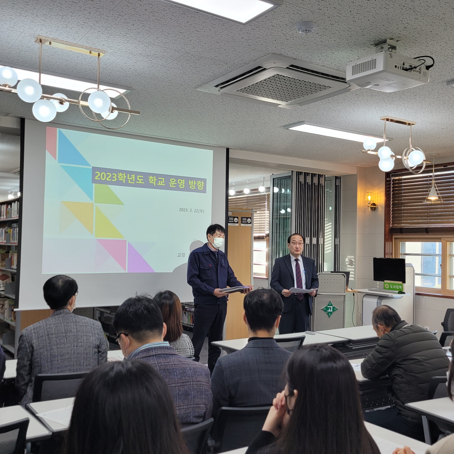 새학기 사전 준비를 통한 학사운영 정상화 도모를 위해 2023년 2월 22일(수)~2월 24일(금) 3일간 운영하였습니다. 교원 전체 대상 각 부서 전달 연수 2023학년도 부서별 회의. 교과별 회의, 리로스쿨 사용 안내 연수 등을 진행하였습니다.