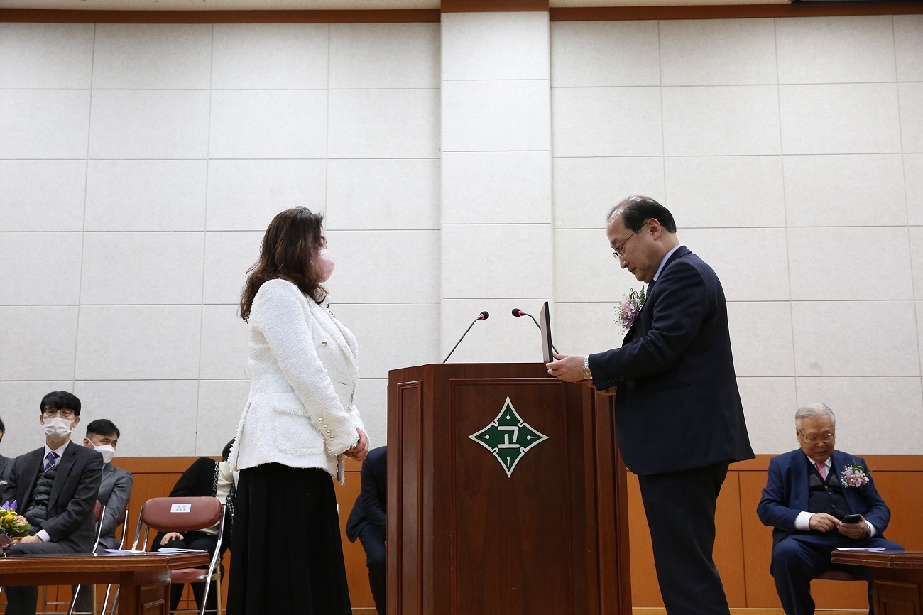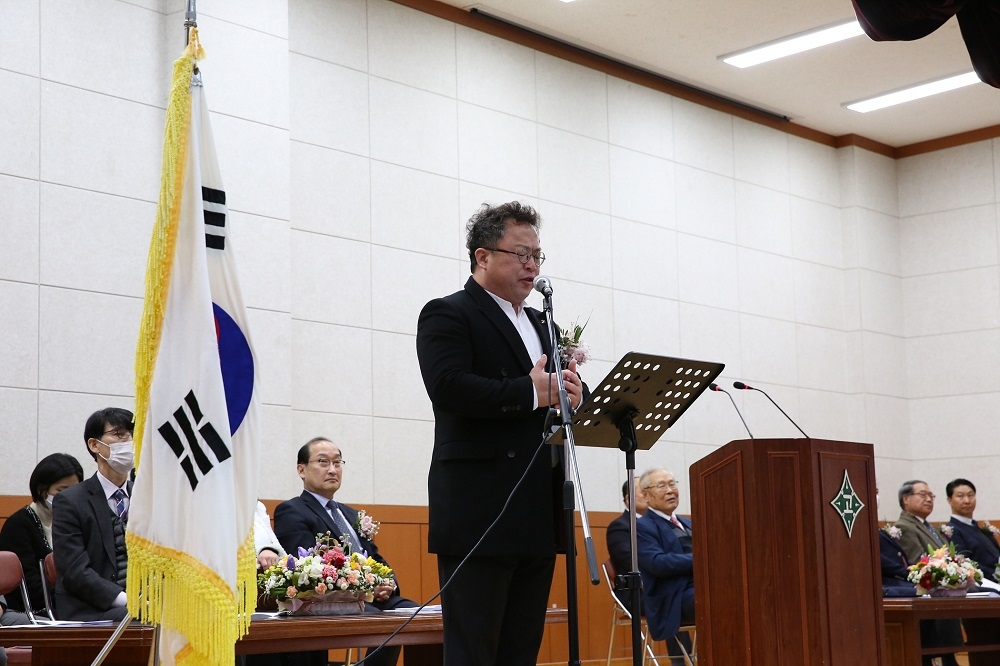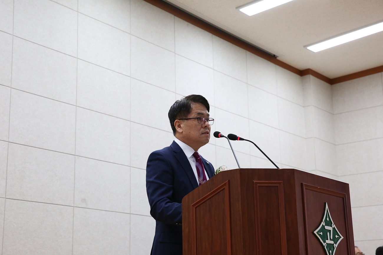 유성근 목사님의 기도를 시작으로 신입생 대표의 선서와 재단 성적우수 장학금, 동우장학회, 총동문회, 현대로템 장학금 등 장학증서 수여식이 있었습니다.