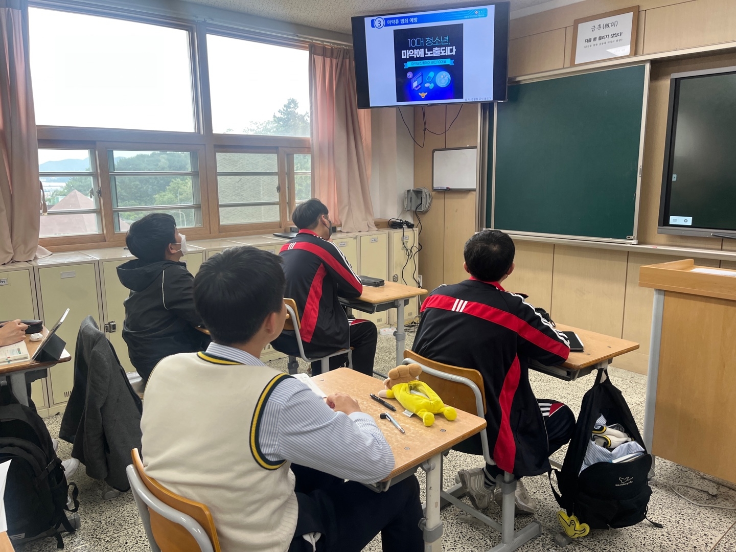 - 전교생 본교 방송실에서 각 교실로 송출한 영상 시청