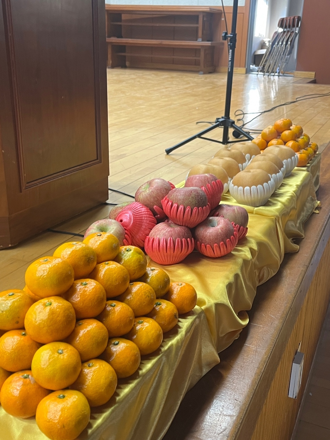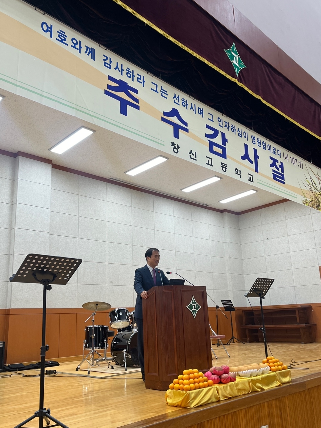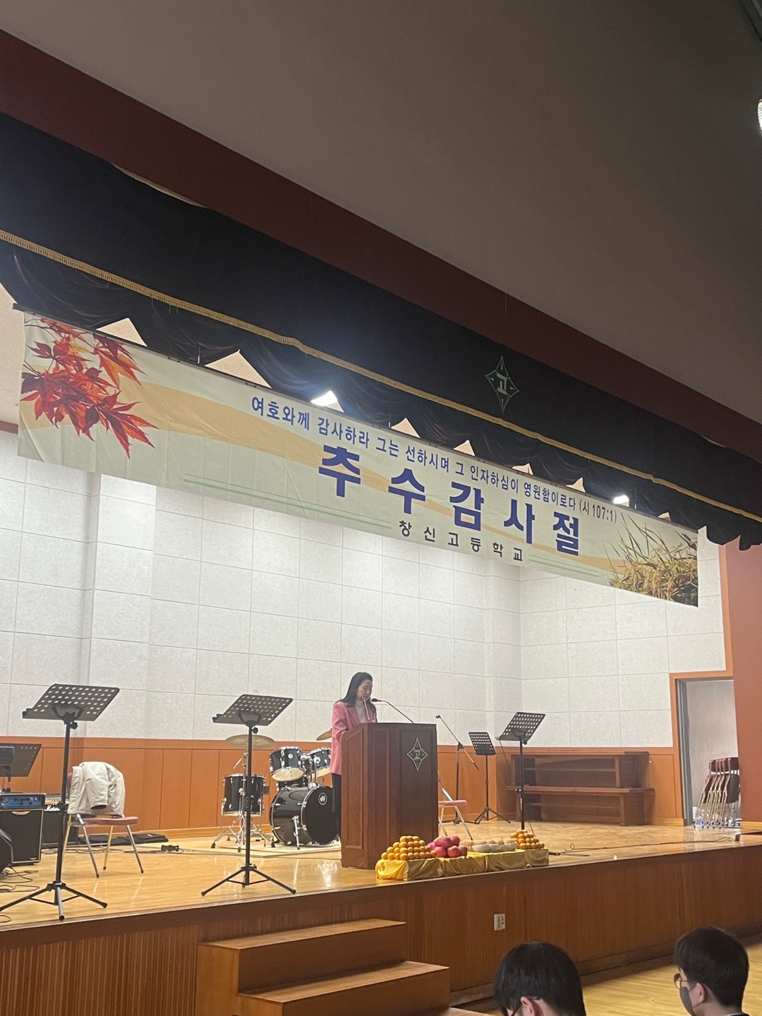 2023년 11월 21일 화요일 5교시에 체육관에서 추수감사절 예배가 진행되었습니다.