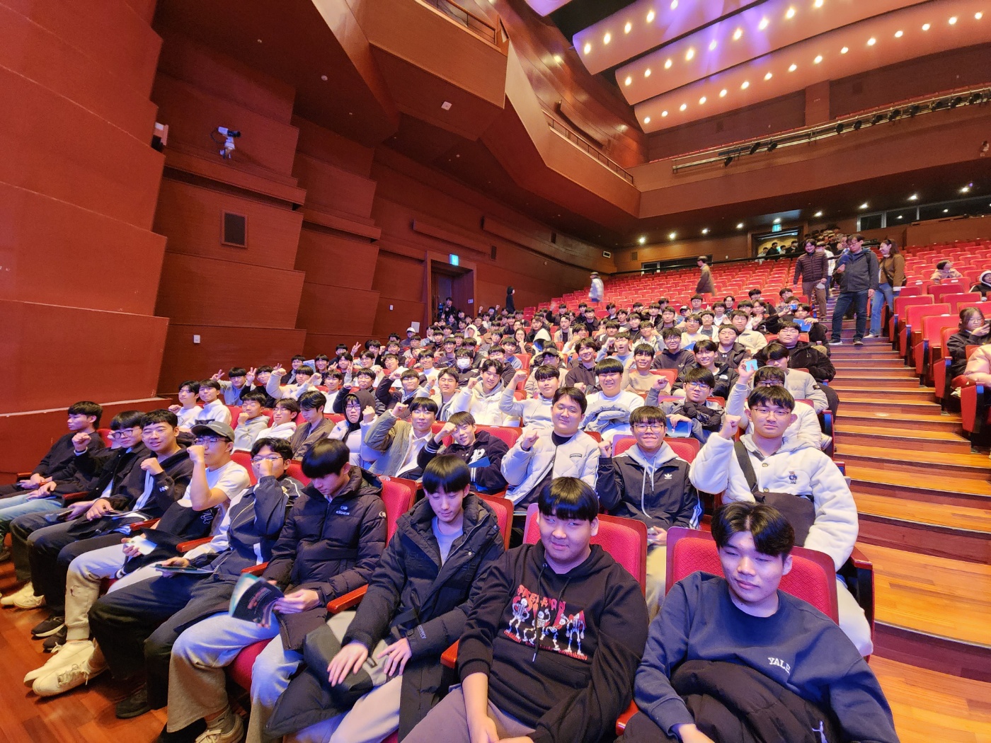 3년 간 학업에 열중한 학생들이 대학수학능력시험을 치른 후 긴장을 풀고 공연을 마음껏 즐겼습니다.