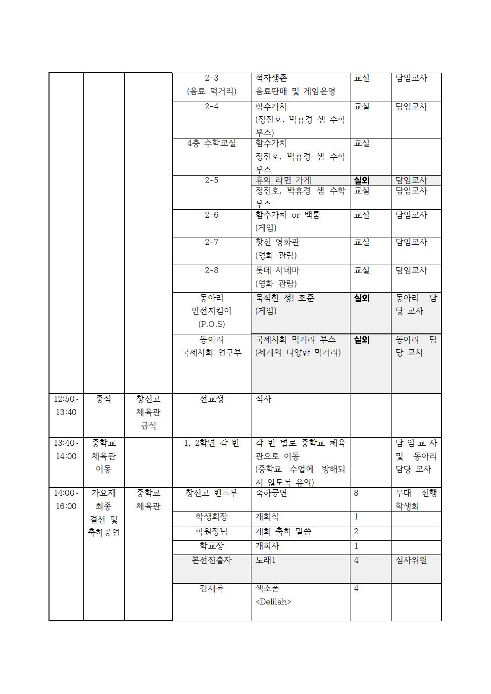 [교육연구부] 2023학년도 창신고 봉암골 축제 상세일정